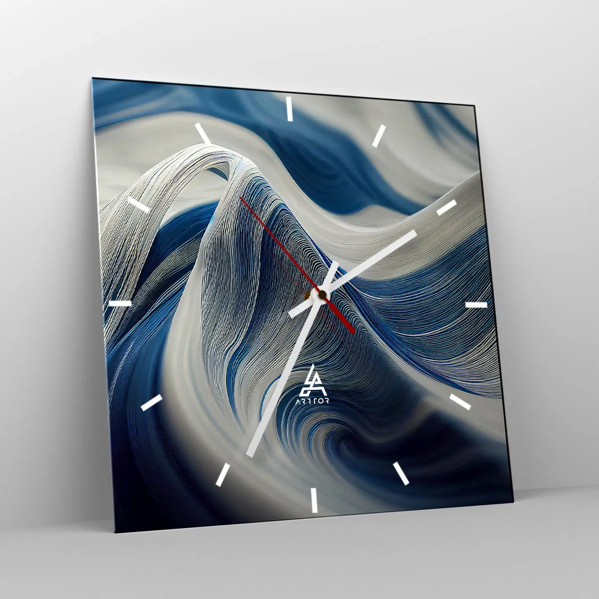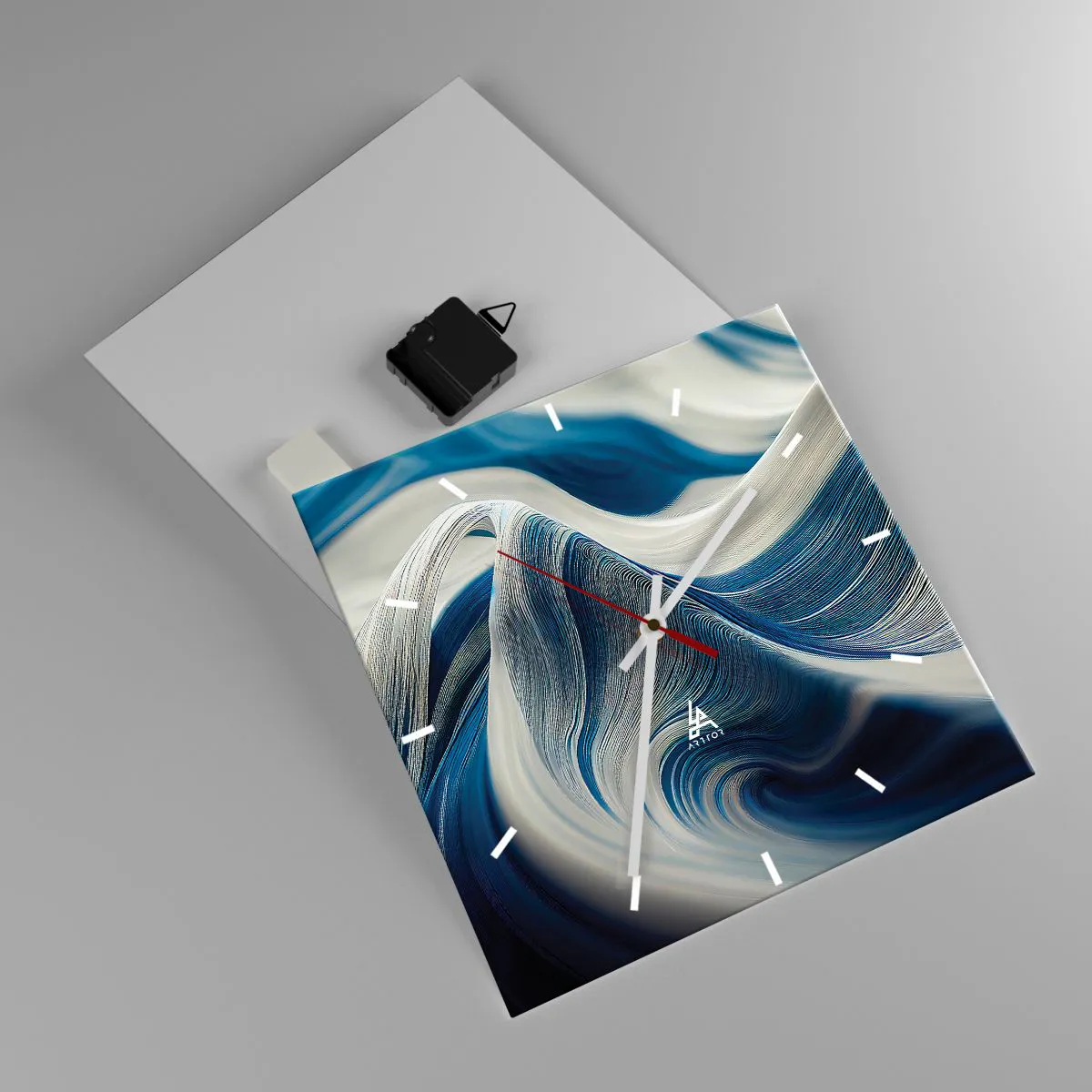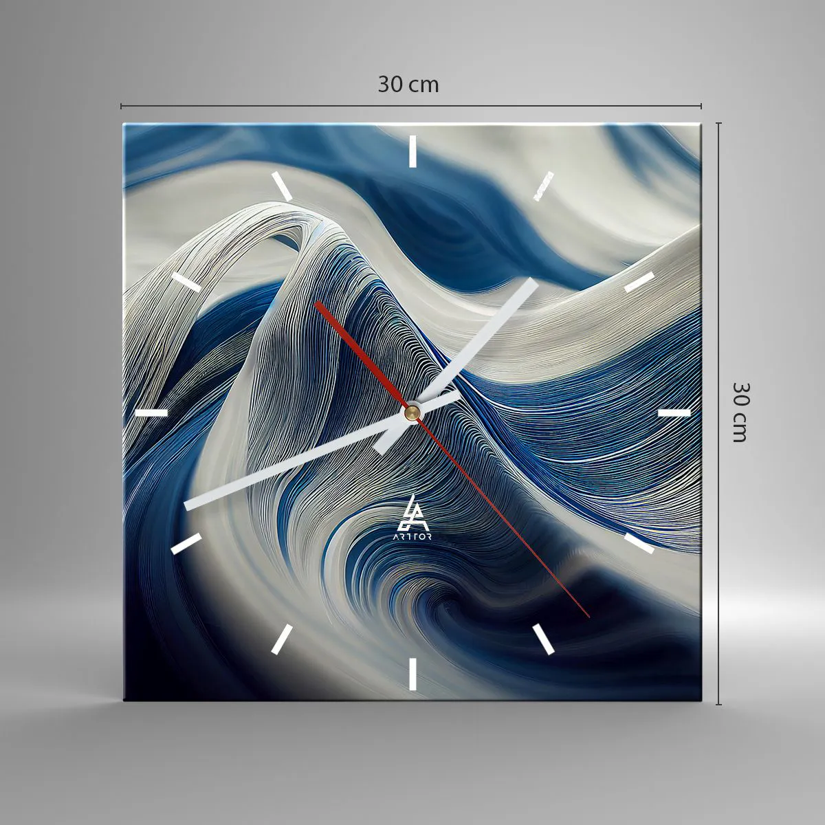 Relógio de parede - Relógio em vidro - A fluidez do azul e do branco - 30x30 cm