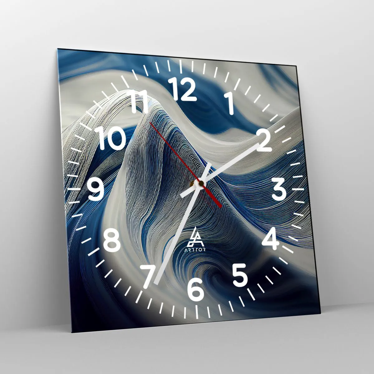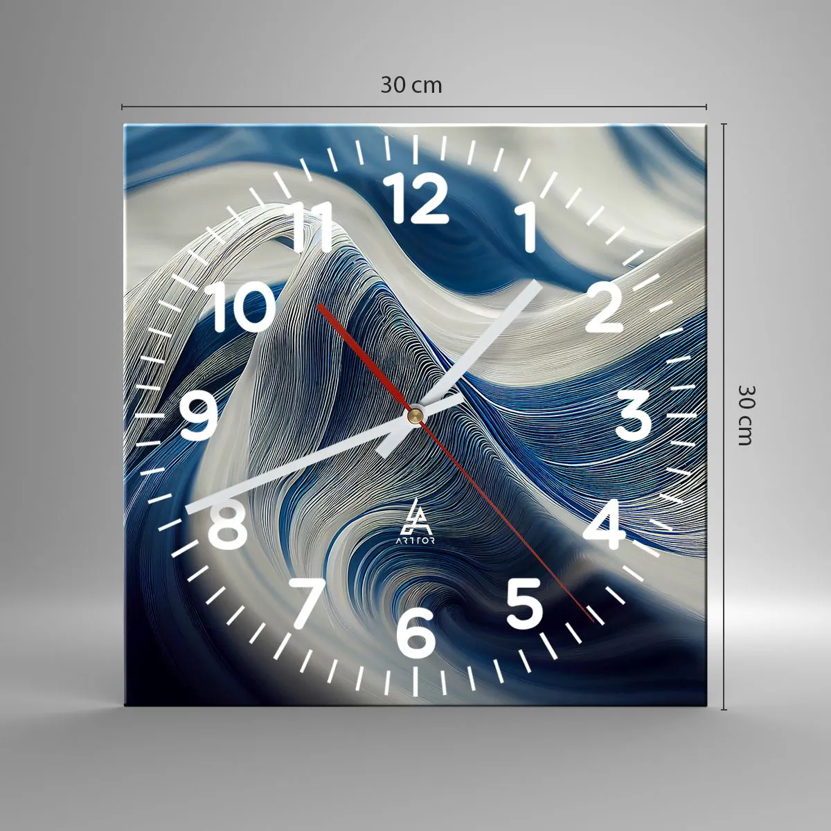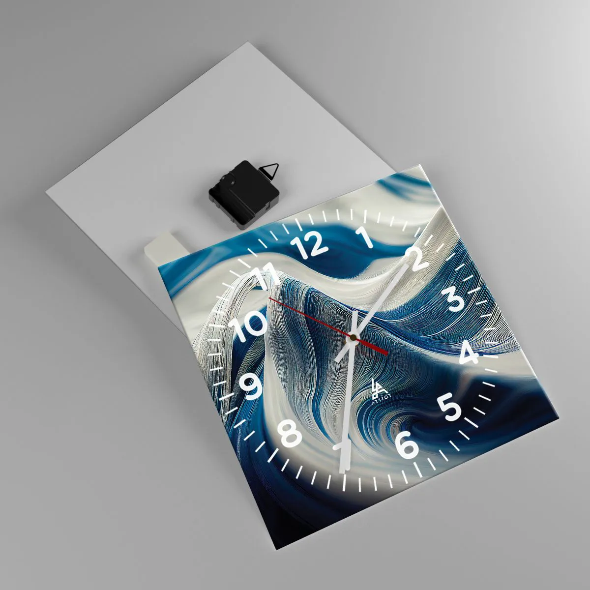 Relógio de parede - Relógio em vidro - A fluidez do azul e do branco - 30x30 cm