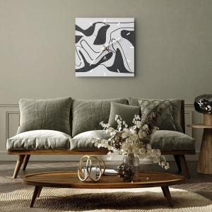 O relógio é feito de vidro de 4mm de espessura. A tecnologia de relógio está em conformidade com a classe de segurança 2B2 de acordo com a norma PN-EN 12600:2004, o que garante resistência ao impacto. O relógio em vidro está pronto para ser pendurado – possui um gancho de metal montado na parte de trás do relógio e um espaçador de espuma, que regula a distância uniforme entre o relógio e a parede. O relógio tem um mecanismo de fluxo silencioso alimentado por uma bateria de 1,5 V - bateria AA (a bateria não está incluída).