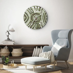 O relógio é feito de vidro de 4mm de espessura. A tecnologia de relógio está em conformidade com a classe de segurança 2B2 de acordo com a norma PN-EN 12600:2004, o que garante resistência ao impacto. O relógio em vidro está pronto para ser pendurado – possui um gancho de metal montado na parte de trás do relógio e um espaçador de espuma, que regula a distância uniforme entre o relógio e a parede. O relógio tem um mecanismo de fluxo silencioso alimentado por uma bateria de 1,5 V - bateria AA (a bateria não está incluída).