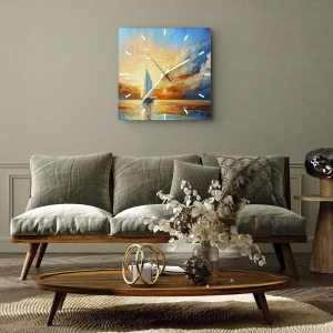 Relógio de parede - Relógio em vidro - Balsa em ouro - 30x30 cm