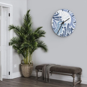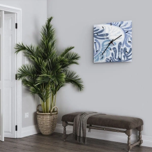 Relógio de parede - Relógio em vidro - Samambaias azuis - 40x40 cm