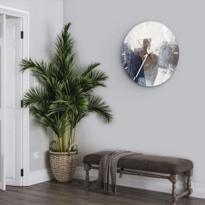 Relógio de parede - Relógio em vidro - Formas azuis e marrons - 30x30 cm