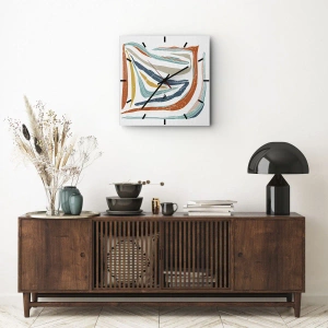 - Este relógio de parede de vidro de 30x30 cm apresenta um design abstrato dinâmico e colorido que lembra ondas e linhas. Um elemento decorativo que traz otimismo, leveza e um toque criativo a qualquer ambiente.
