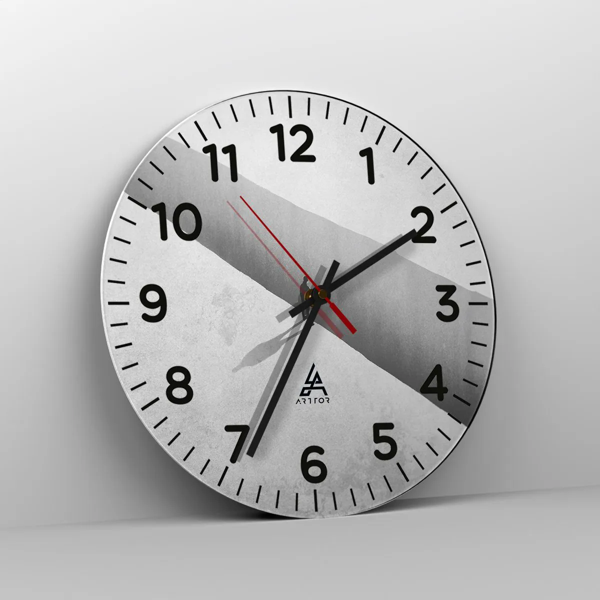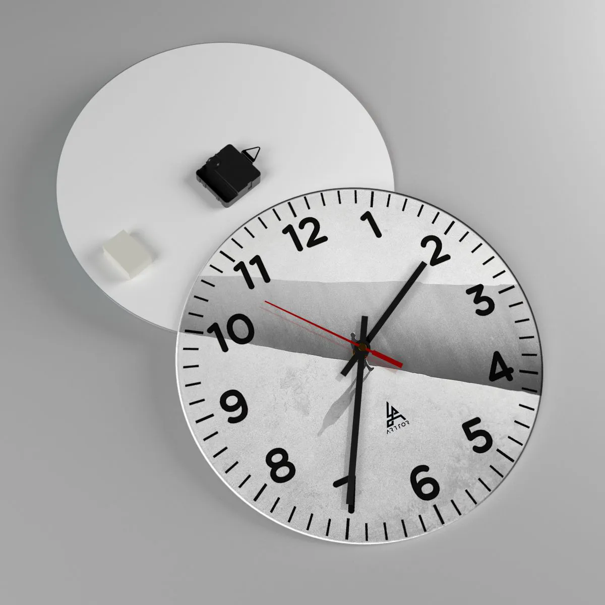 O relógio é feito de vidro de 4mm de espessura. A tecnologia de relógio está em conformidade com a classe de segurança 2B2 de acordo com a norma PN-EN 12600:2004, o que garante resistência ao impacto. O relógio em vidro está pronto para ser pendurado – possui um gancho de metal montado na parte de trás do relógio e um espaçador de espuma, que regula a distância uniforme entre o relógio e a parede. O relógio tem um mecanismo de fluxo silencioso alimentado por uma bateria de 1,5 V - bateria AA (a bateria não está incluída).