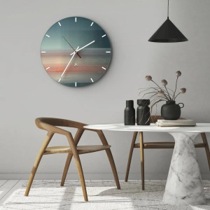 "Abstração: ondas de luz" é um relógio de parede moderno com uma estética excepcionalmente calma e sutil. O mostrador do relógio apresenta um motivo abstrato que lembra ondas de luz - faixas de cores desfocadas criam o efeito de uma transição harmoniosa.