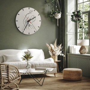 - Este relógio de parede redondo de 30x30 cm apresenta um esboço sutil e fino de uma silhueta feminina. Perfeito para interiores intimistas, modernos e artísticos.