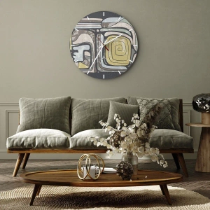 Relógio de parede - Relógio em vidro - Abstração no espírito pré-colombiano - 30x30 cm