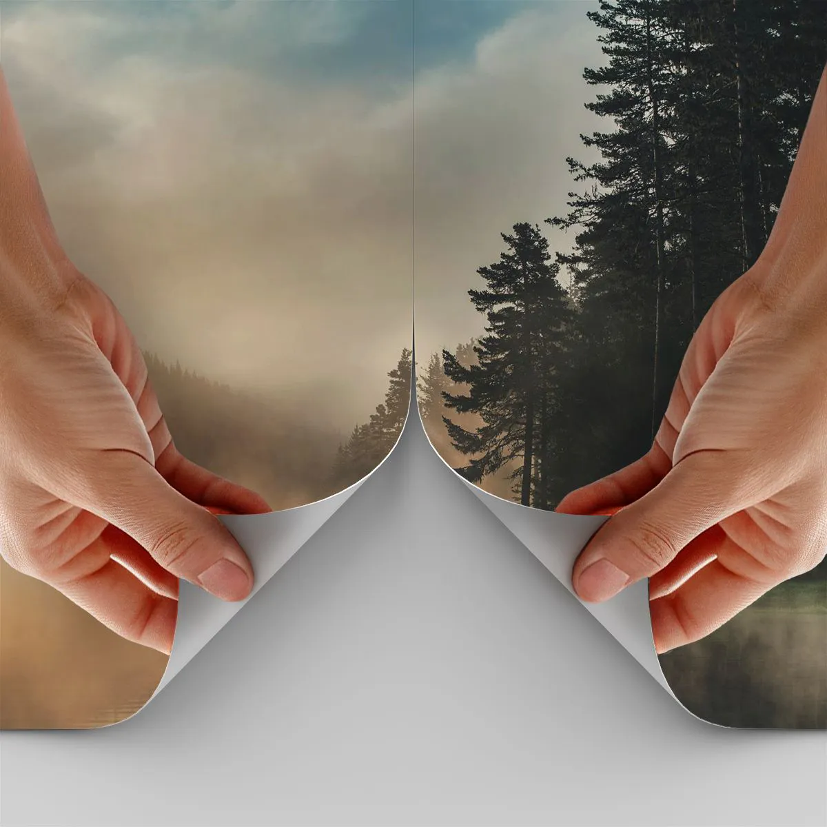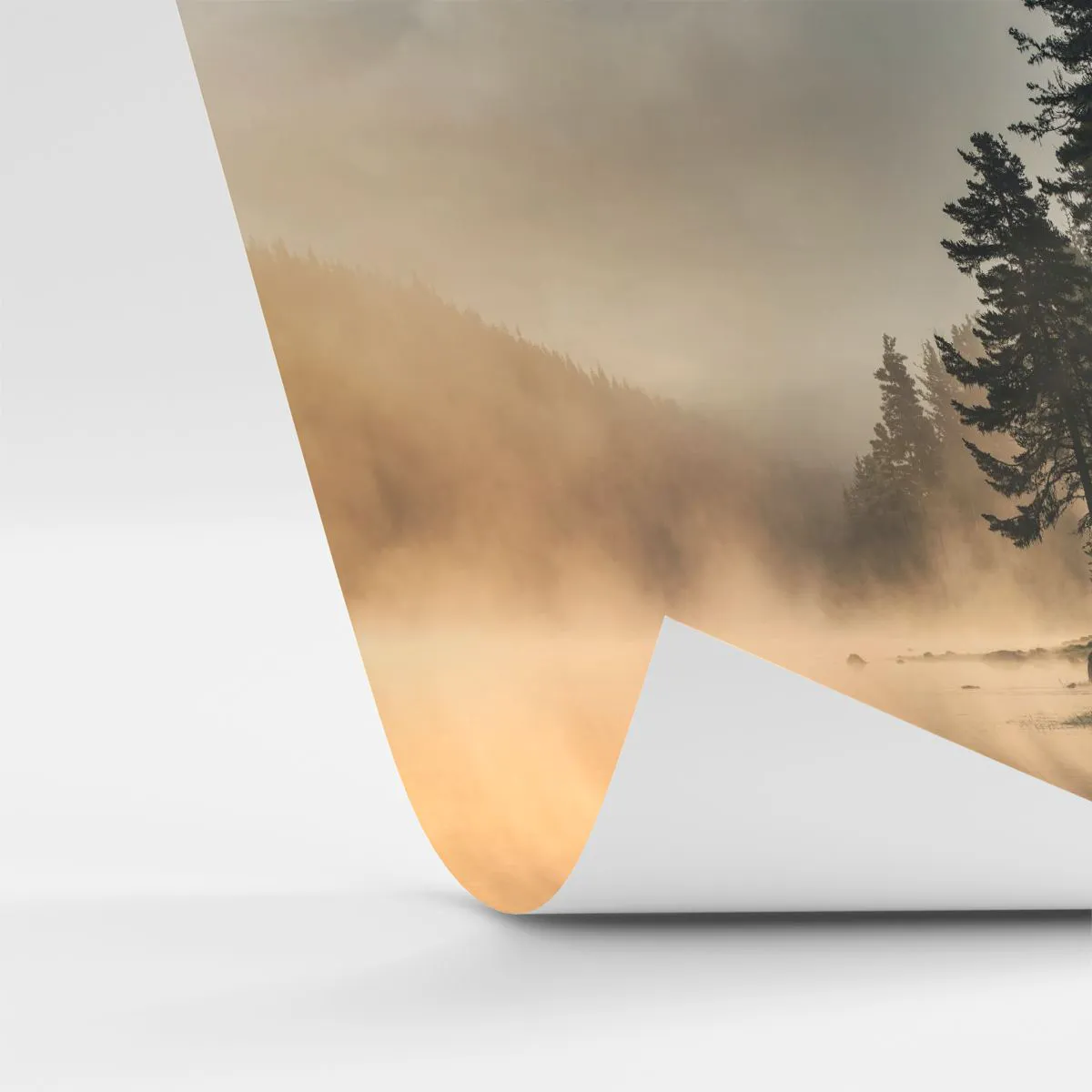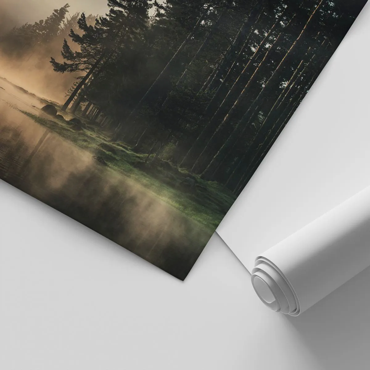 - Este papel de parede fotográfico retrata uma paisagem florestal pitoresca à beira de um lago, envolta em uma névoa misteriosa ao nascer do sol. A luz sutil e os reflexos na água criam uma atmosfera de paz e harmonia. Perfeito para interiores inspirados...