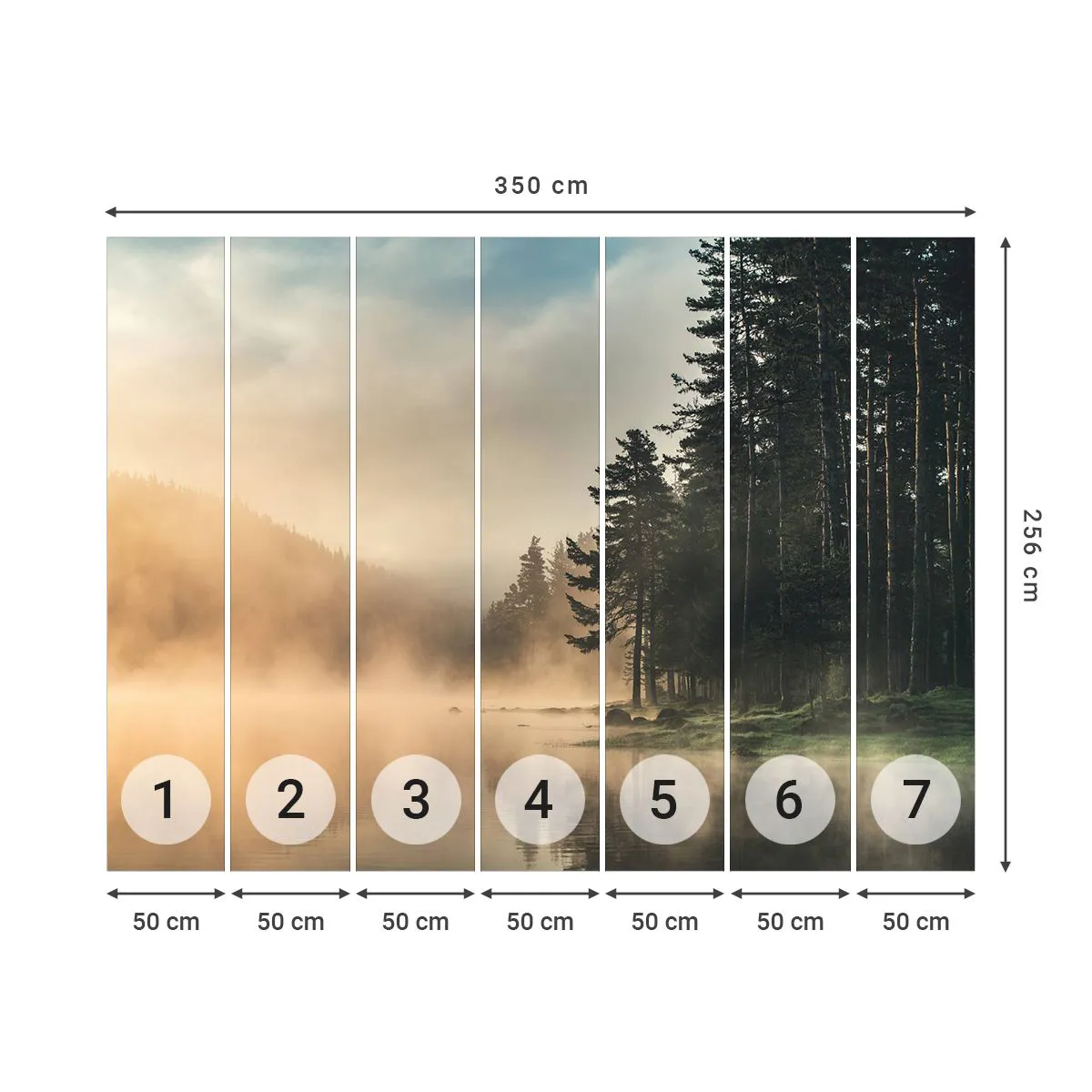 Papel de Parede Premium Canvas - O nascimento do dia - Paisagem, Lago, Floresta - 350x256 cm