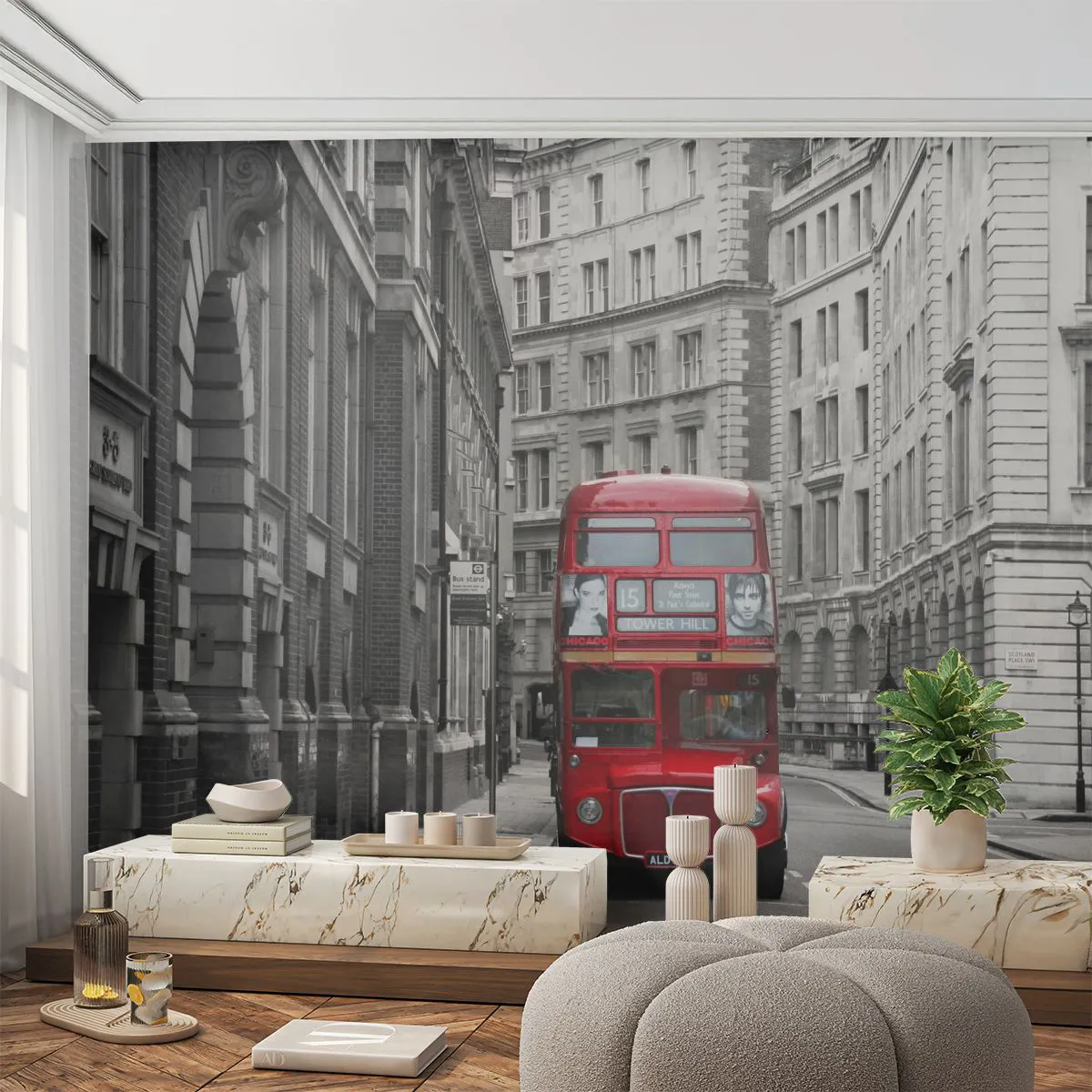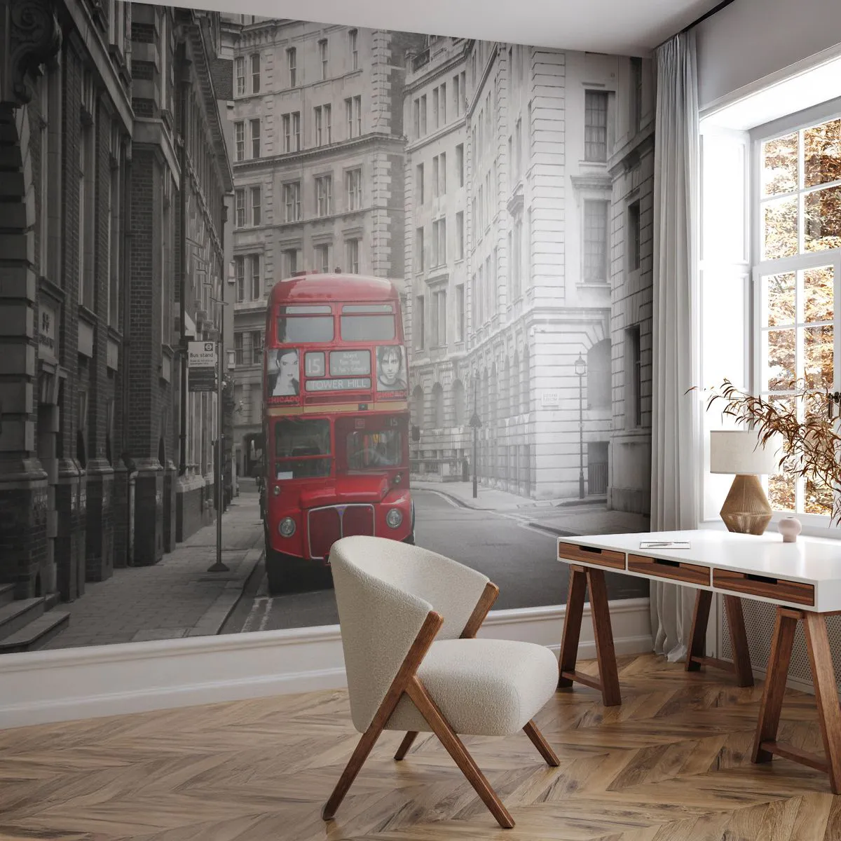 Papel de Parede Premium Sand - A vida quotidiana não deve ser cinzenta - Cidade, Londres, Arquitetura - 100x70 cm
