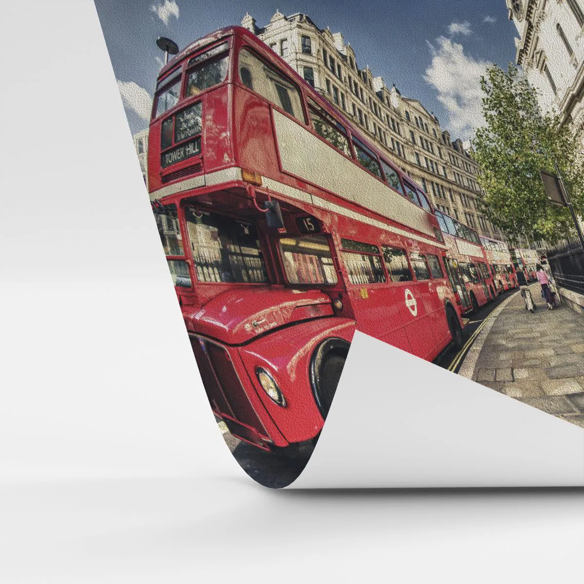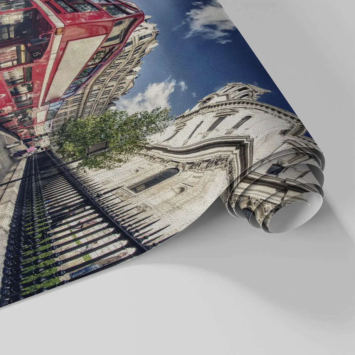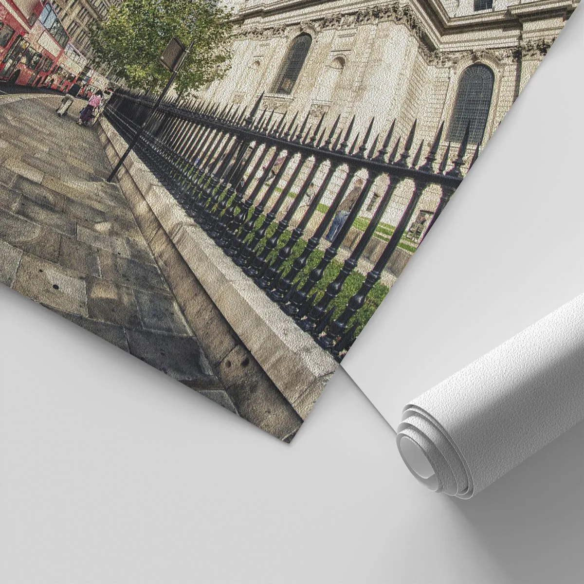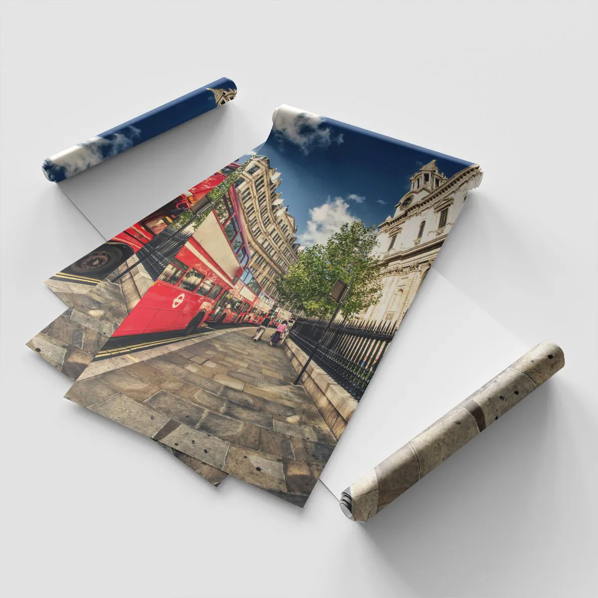 Papel de Parede Premium Sand - Rua de Londres em cinza e vermelho - Cidade, Londres, ônibus vermelho - 100x70 cm