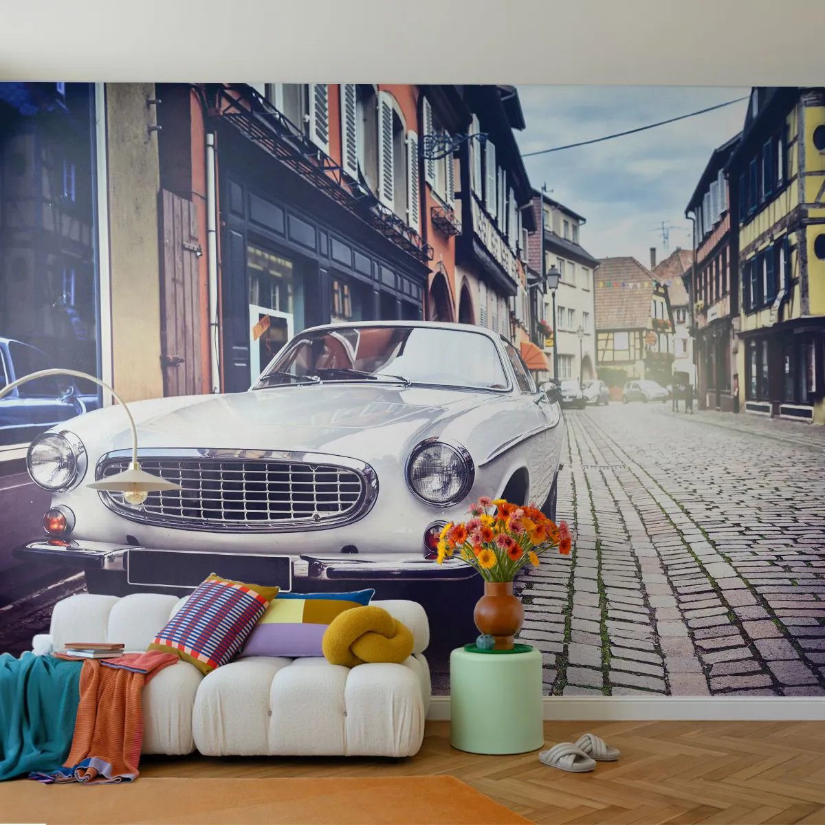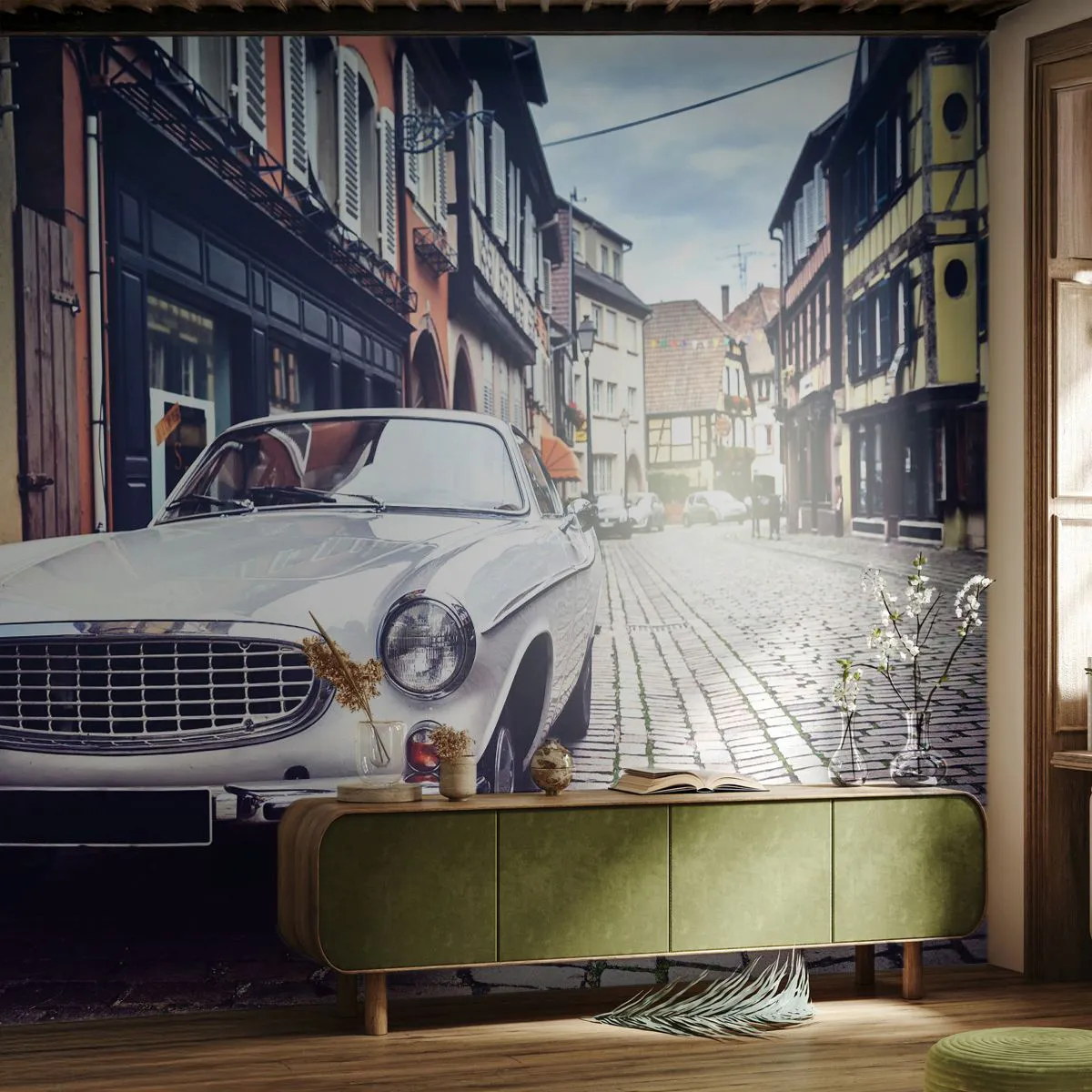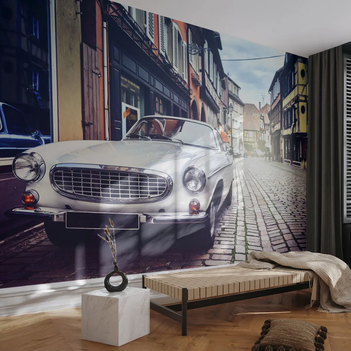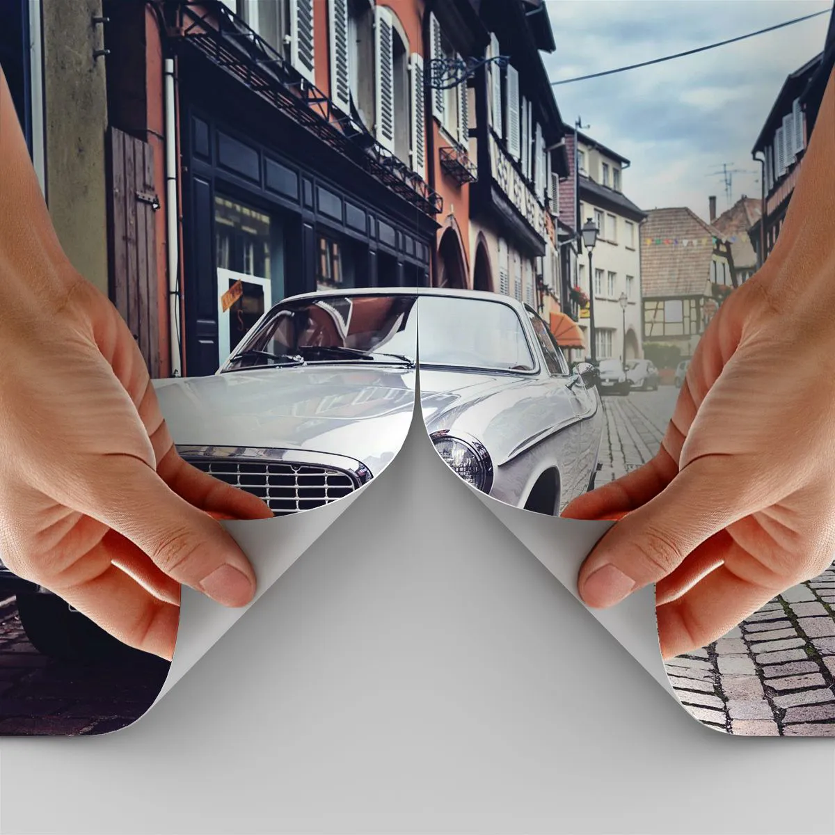 Papel de Parede Premium Sand - O passado é hoje - Carro antigo, Cidade, França - 100x70 cm