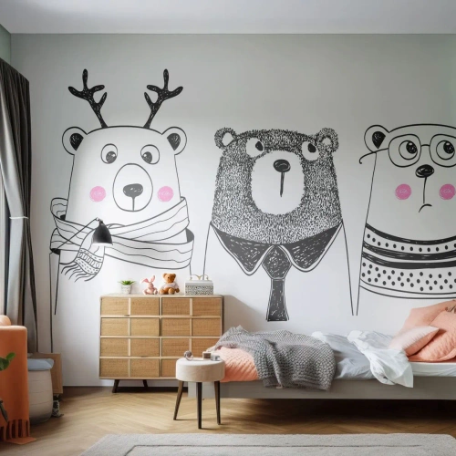 Papel de Parede Premium Canvas - Urso, ursinho e ursão - Para crianças, Urso, Ilustração - 400x280 cm
