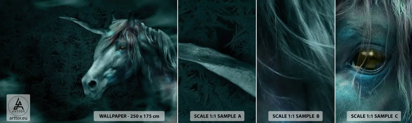 Amostra de Papel de Parede Standard Eco - Na floresta de conto de fadas - Unicórnio, Fantasia, Abstração - 100x30 cm
