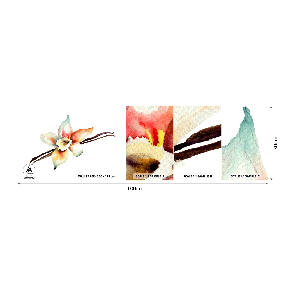 Amostra de Papel de Parede Standard Eco - Doçura derramada com tinta - Flor de baunilha, Flor, Palito de baunilha - 100x30 cm