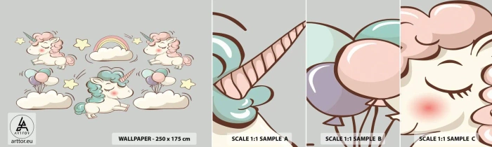 Amostra de Papel de Parede Standard Eco - Certamente existem... - Para crianças, Unicórnio, Conto de fadas - 100x30 cm