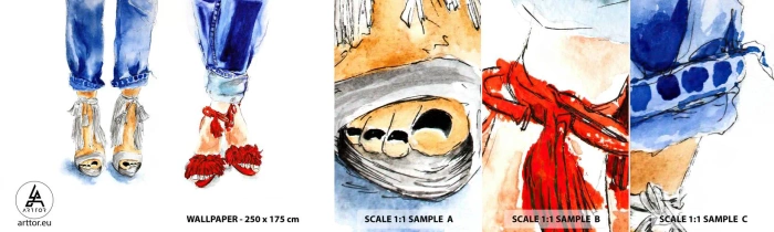 Amostra de Papel de Parede Standard Eco - Por que não vamos passear? - Mulher, Moda, Calçados - 100x30 cm
