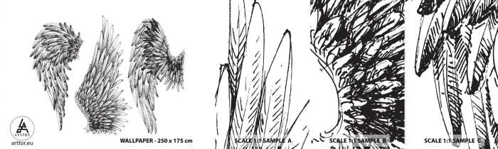 Amostra de Papel de Parede Standard Eco - Você também pode se tornar um anjo - Pena de pássaro, Asas, Gráficos - 100x30 cm