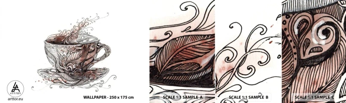 Amostra de Papel de Parede Standard Eco - Um chá é bom para tudo - Abstração, Xícara, Café expresso - 100x30 cm