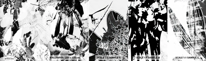 Amostra de Papel de Parede Standard Eco - Outono a preto e branco - Abstração, Flores, Gráficos - 100x30 cm
