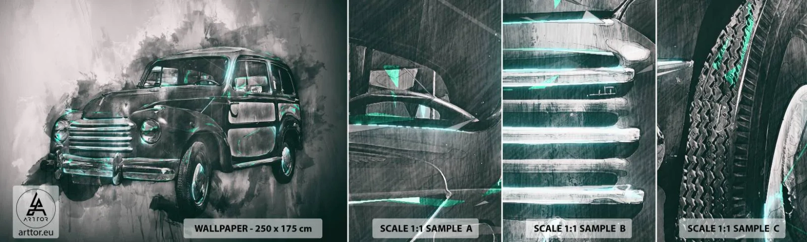 Amostra de Papel de Parede Standard Eco - Ancestral respeitável - Carro retrô, Automotivo, Viagem - 100x30 cm