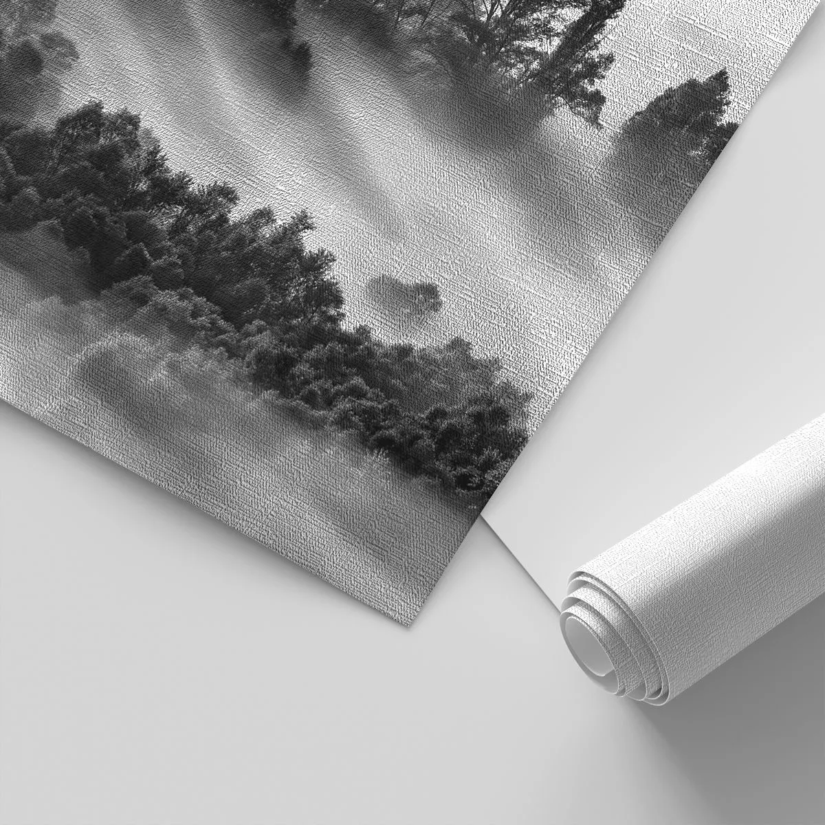 Papel de Parede Premium Canvas - Levantar-se do sono - Paisagem, Floresta, Névoa - 100x70 cm