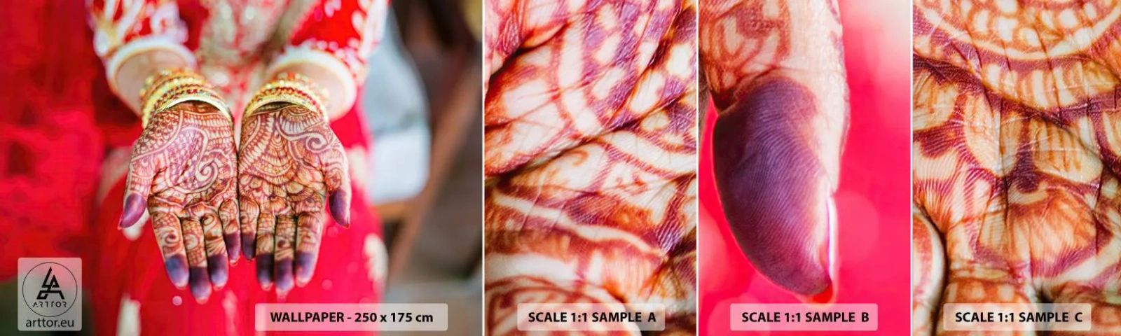 Amostra de Papel de Parede Standard Eco - Pronto para alcançar a felicidade - Mãos Femininas, Desenhos Orientais, Índia - 100x30 cm