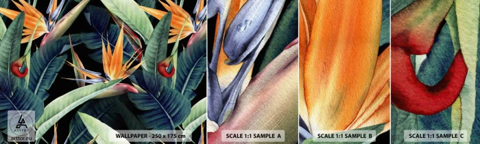 Amostra de Papel de Parede Standard Eco - Flores ardentes dos trópicos - Strelitzia real, Flor, África - 100x30 cm