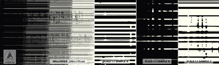 Amostra de Papel de Parede Standard Eco - Ondas e vibrações - Preto e branco, Códigos de barra, Linhas - 100x30 cm