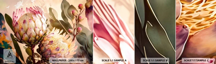 Amostra de Papel de Parede Standard Eco - Abraçado com ternura - Flores, Plantas, Botânica - 100x30 cm