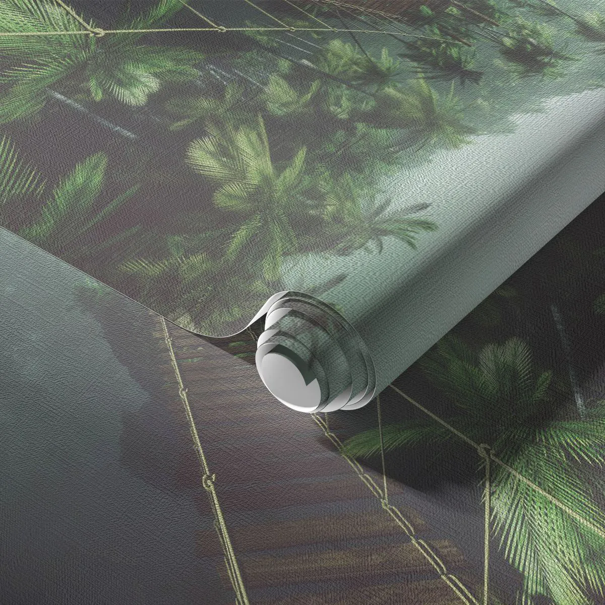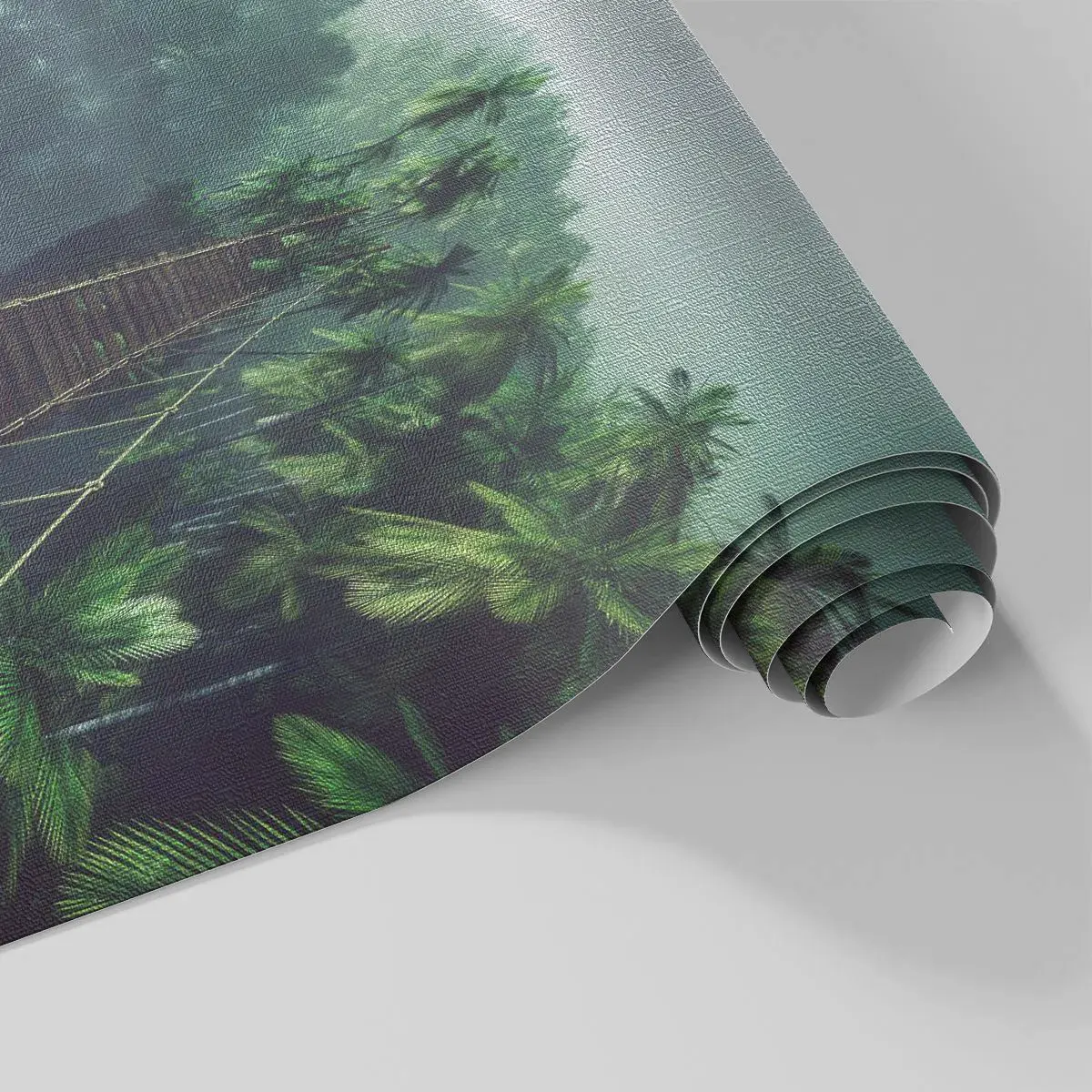 Papel de Parede Premium Canvas - Sobre o verde fervente - Paisagem, Selva, Coqueiro - 500x350 cm