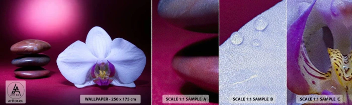 Amostra de papel de parede Premium Sand - O estudo do frescor em roxo - Flores, Spa, Pedras - 100x30 cm