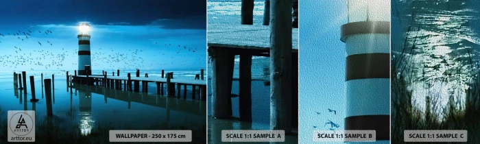 Amostra de papel de parede Premium Sand - E não se teme o escuro - Paisagem, Farol, Ponte de madeira - 100x30 cm