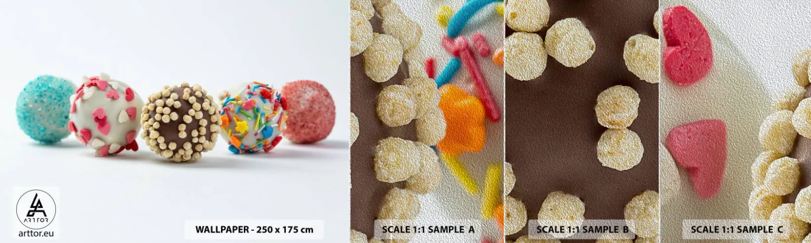 Amostra de papel de parede Premium Sand - A vida pode ser doce - Doces, Doces, Pirulitos Coloridos - 100x30 cm