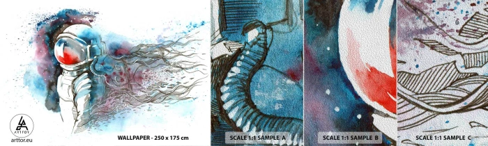 Amostra de papel de parede Premium Sand - Sozinho com o espaço - Astronauta, Cosmonauta, Abstração - 100x30 cm