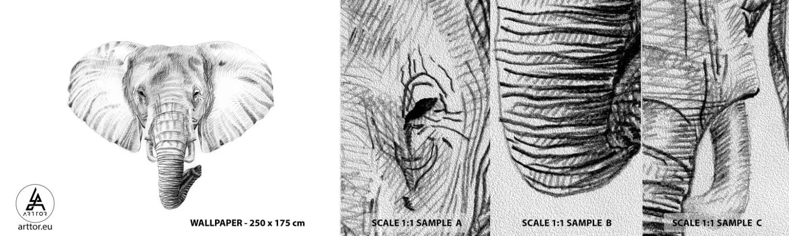Amostra de papel de parede Premium Sand - Havia um elefante, grande como um elefante - Animais, Elefante, Gráficos - 100x30 cm