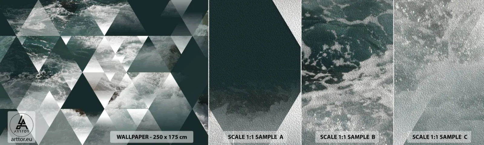 Amostra de papel de parede Premium Sand - Uma perspetiva de cristal - Abstração, Ondas do mar, Pedaço - 100x30 cm