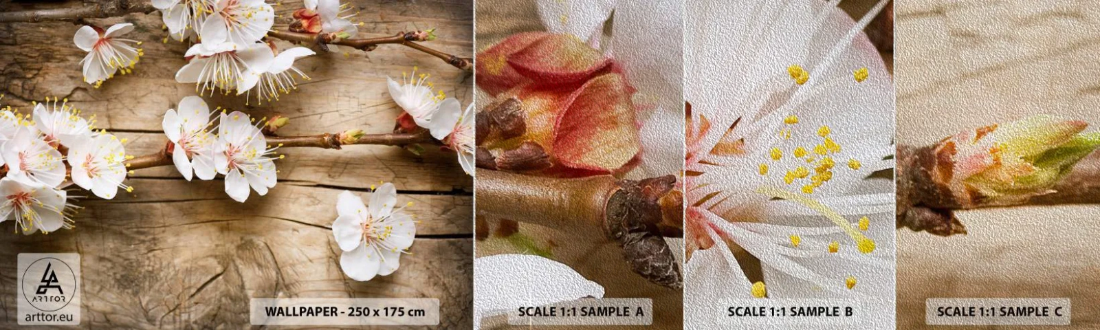 Amostra de papel de parede Premium Sand - E a primavera chegou - Flores, Galho com flores, Natureza - 100x30 cm