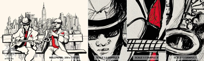 Amostra de papel de parede Premium Sand - Improvisação nova-iorquina - Música, Jazz, Nova Iorque - 100x30 cm
