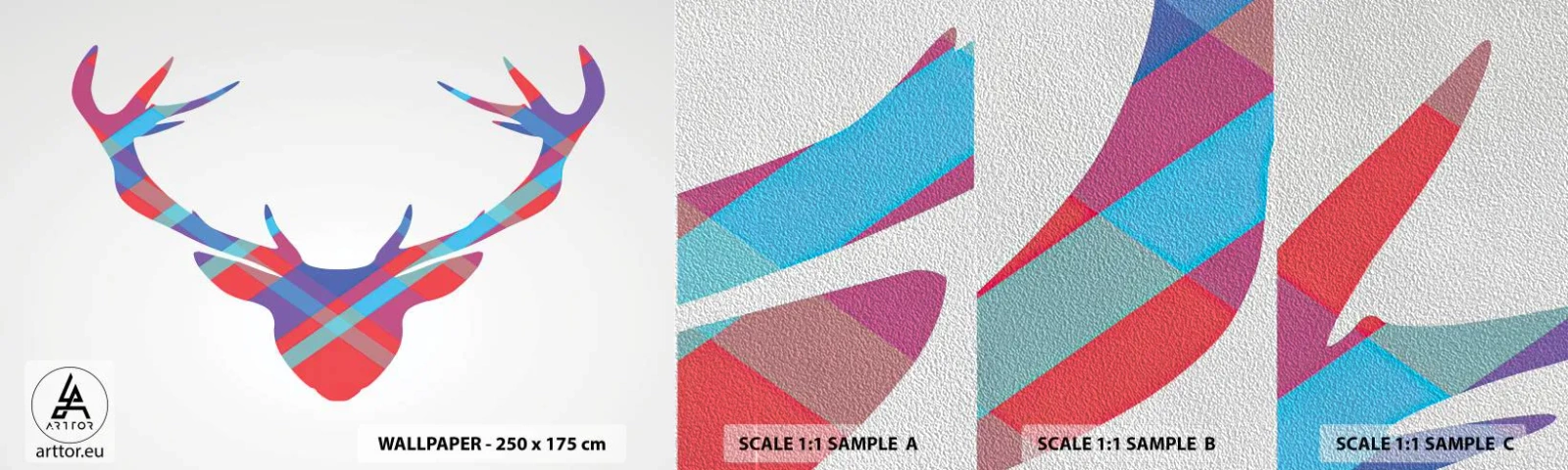 Amostra de papel de parede Premium Sand - Veado escocês - Abstração, Cervo, Chifres - 100x30 cm