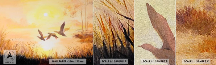 Amostra de papel de parede Premium Sand - O início de uma longa viagem - Natureza, Pato selvagem, Paisagem - 100x30 cm