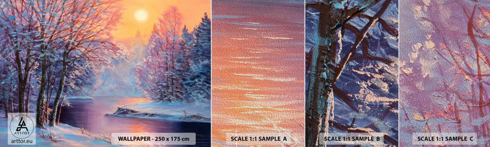 Amostra de papel de parede Premium Sand - Cores do inverno - Paisagem, Rio, Floresta - 100x30 cm