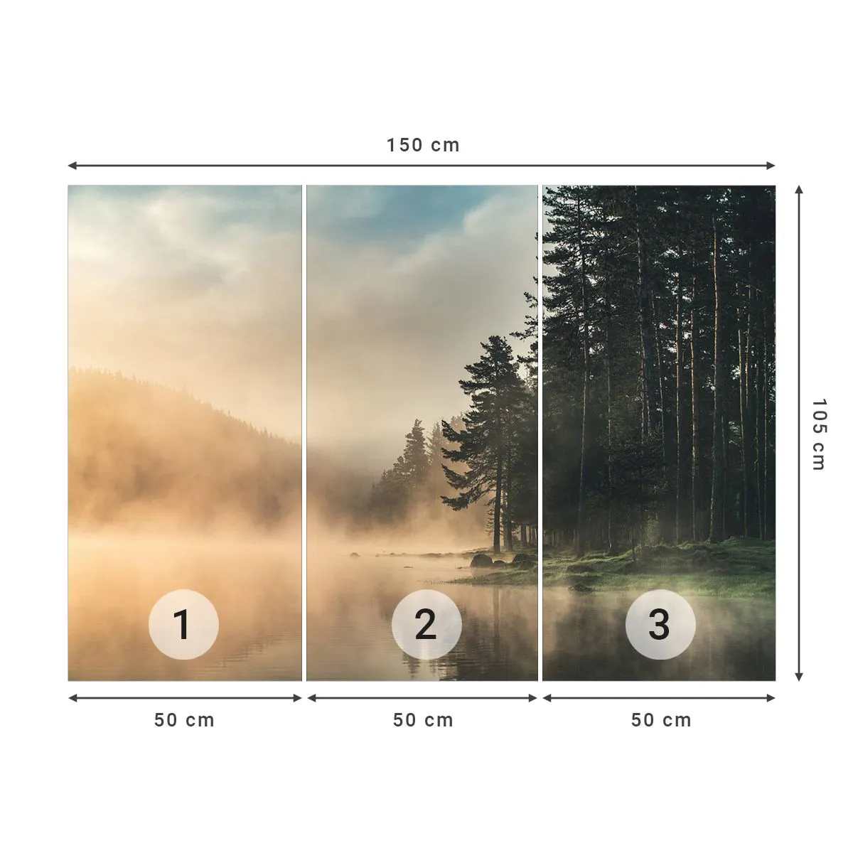 Papel de Parede Premium Canvas - O nascimento do dia - Paisagem, Lago, Floresta - 150x105 cm