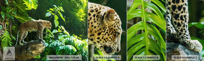 Amostra de papel de parede Premium Sand - Vamos caçar? - Selva, leopardo, Trópicos - 100x30 cm