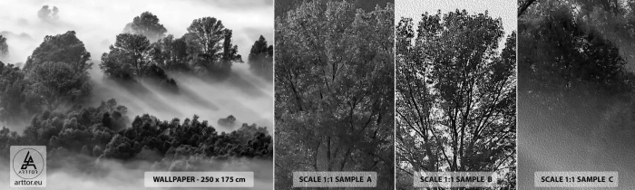 Amostra de papel de parede Premium Sand - Levantar-se do sono - Paisagem, Floresta, Névoa - 100x30 cm