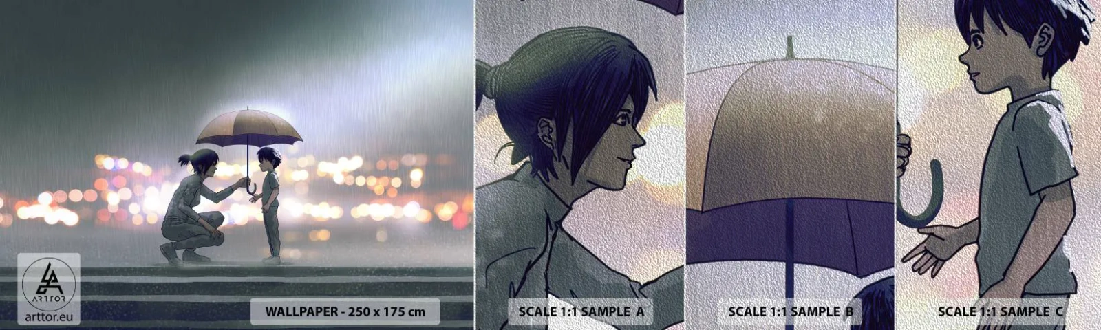 Amostra de papel de parede Premium Sand - Está tudo bem agora - Para crianças, Família, Guarda-chuva - 100x30 cm