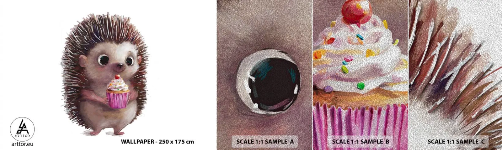 Amostra de papel de parede Premium Sand - A celebração é diária - Para crianças, Ouriço, Conto de fadas - 100x30 cm