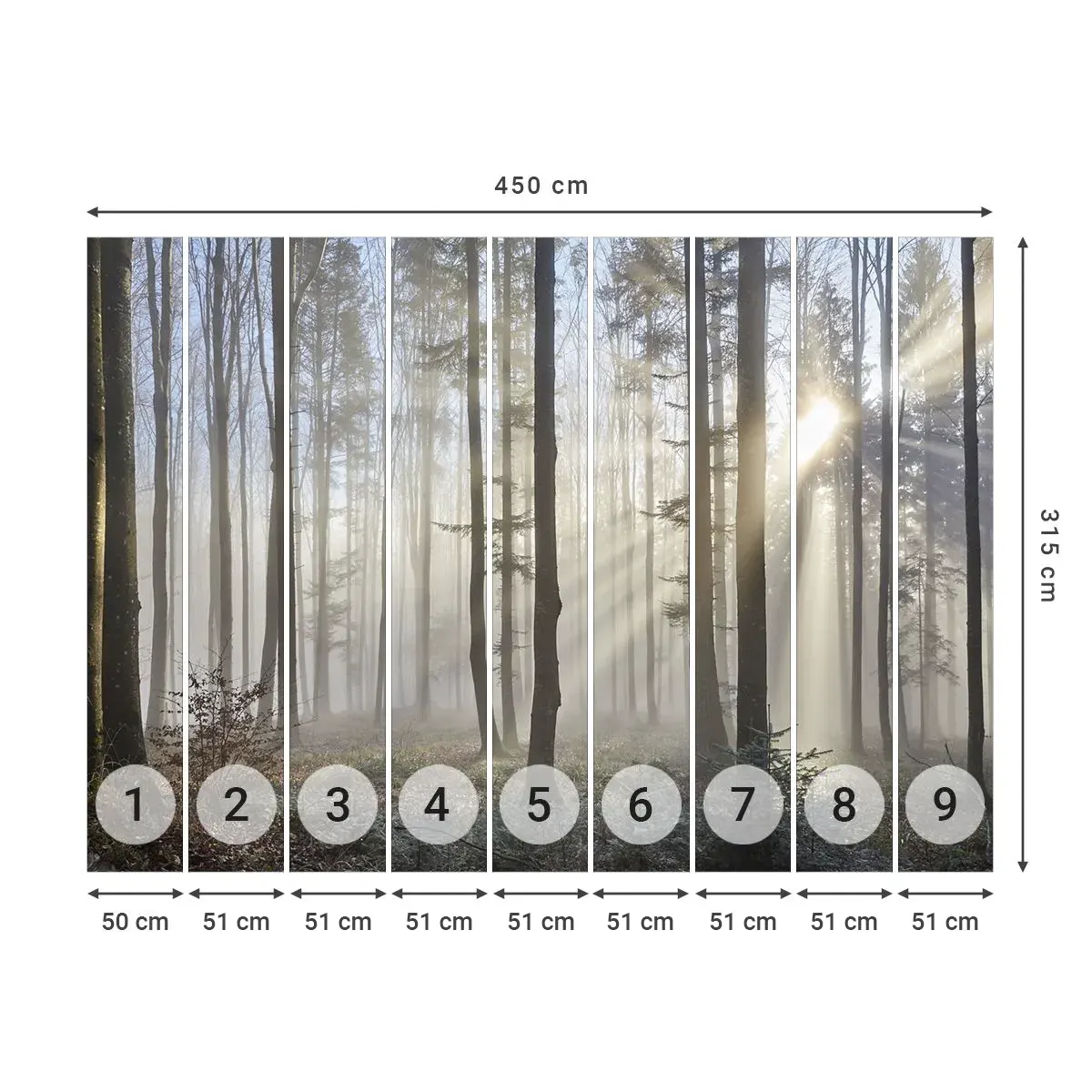 Papel de Parede Autocolante Deluxe Sticker - O nevoeiro também acordou - Paisagem, Floresta, Névoa - 450x315 cm