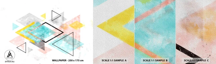 Amostra de papel de parede Premium Sand - Jogo geométrico - Brilhante, Triângulos, Minimalismo - 100x30 cm